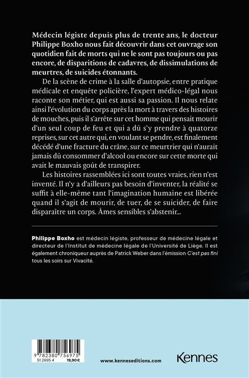 Dans ce livre, Philippe Boxho, médecin légiste, raconte son quotidien entre salle d’autopsie et enquêtes judiciaires. Chaque corps, marqué par la vie et par la mort, devient un témoin muet qui révèle la vérité cachée : crimes, accidents, mystères élucidés grâce à la science.
